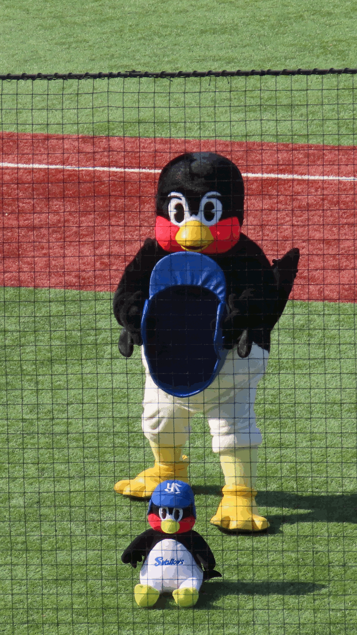 5回裏終了後に行われる、ヤクルトのマスコットつば九郎による「空中くるりんぱ」チャレンジです